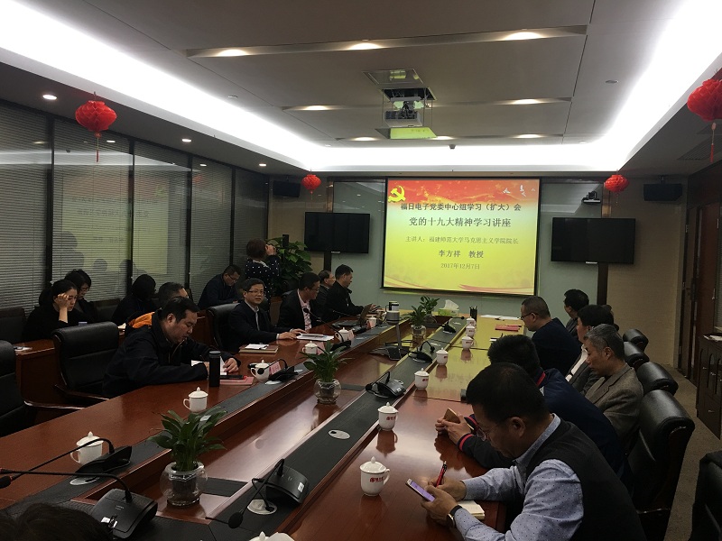 2017年12月7日下午,AG电子官方网站以党委中心组学习(扩大)会的形式举办党的十九大精神学习讲座,特邀福建师范大学马克思主义学院院长、博士生导师李方祥教授作了题为《新思想引领新时代,新使命开启新征程》的十九大精神辅导,公司党委委员、成员企业、事业部副总以上领导、本部助理以上管理人员以及机关支部全体党员近40人参会。