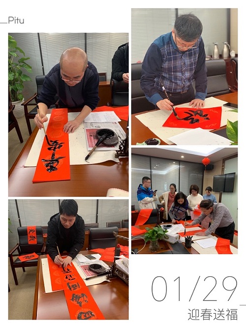 “一帆风顺年年好,万事如意步步高”、“张灯结彩迎新春,欢天喜地庆佳节”……1月29日下午,AG电子官方网站工会开展“迎春送福”写春联活动,来自各部门的书法达人和书法爱好者们集聚一堂,挥毫泼墨,为大家送去新春的祝福。
