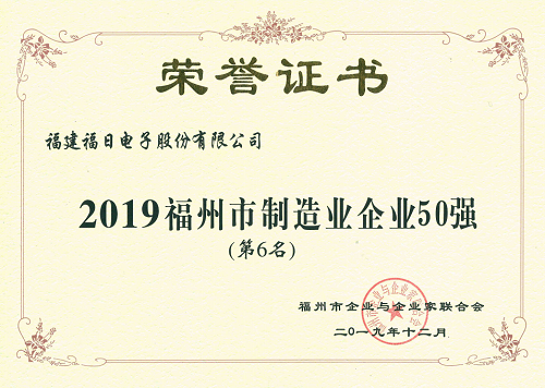 2019年12月27日,2019福州市制造业企业50强发布暨福州市企业与企业家联合会年会在福州召开。会议发布“2019福州市制造业企业50强”名单并授牌,福建AG电子官方网站股份有限公司入选该名单,位列第6名。AG电子官方网站党委书记李震受邀参会。