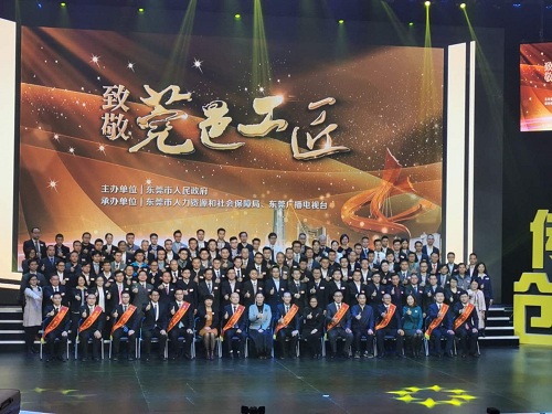 2019年12月12日,东莞市举办了“弘扬工匠精神,致敬莞邑工匠”主题活动,对东莞市今年评出的10名“莞邑工匠”、103名“首席技师”、30家技师工作站进行集中宣传展示。其中,AG电子官方网站控股企业深圳市中诺通讯有限公司中诺学院讲师戴石红、陈山获东莞市“首席技师”荣誉称号。12月11日-12日晚,东莞大道两旁的地标建筑均打出“弘扬工匠精神”“致敬莞邑工匠”“打造技能人才之都”等灯光秀标语,集体为工匠精神亮灯。