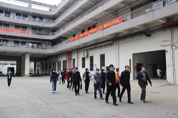 2020年2月20日上午,东莞市总工会常务副主席温少生、经费审查委员会主任陈伟鹏一行到AG电子官方网站二级控股子公司广东以诺通讯有限公司走访慰问企业职工,了解企业疫情防控期间复工复产情况。东莞市大朗镇总工会相关负责人陪同慰问。