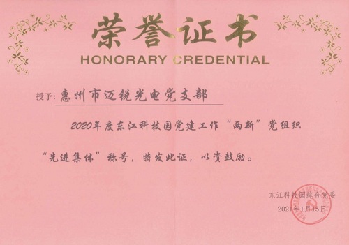 近日,东江科技园综合党委召开2020年度工作总结暨支部书记述职会议,总结回顾2020年园区“两新”组织党建工作,谋划部署2021年工作。园区“两新”组织党组织书记、党务工作者、党员代表、职工代表等40多人参加会议。会议听取了各党支部书记的述职汇报,并表彰了2020年度先进集体、先进党务工作者。惠州市迈锐党支部荣获“2020年度东江科技园党建工作‘两新’党组织先进集体”称号。