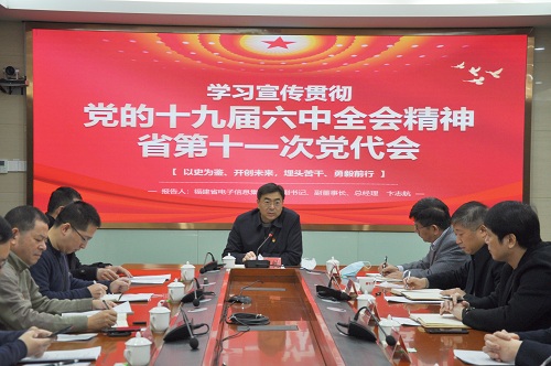 2021年12月31日,福建省电子信息集团党委副书记、副董事长、总经理卞志航到AG电子官方网站作党的十九届六中全会精神、省第十一次党代会精神专题宣讲。集团相关部室负责人、AG电子官方网站领导班子成员及各部门负责人等参加宣讲会。