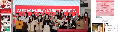 源磊科技、迈锐光电、以诺通讯等成员企业也通过赠送贺卡鲜花、线上有奖留言点赞、三八红旗手颁奖会等活动为女职工送上节日的祝福。