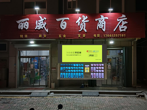“2号店”由国家信息中心与华融资产管理公司合资成立,其针对小微商户研发的智能销售终端,平时隐藏在招牌中,夜间或假期小店关门后就从招牌里“降下来”,让门店“一键切换”实现24小时营业,开启了线上线下融合新消费模式。为积极响应国家推动小店经济发展相关政策,在综合考虑考量性能、价格等核心指标,迈锐光电与“2号店”强强联合,以“让生意更容易”为出发点,全力打造智能招牌系统,提供LED整体解决方案。