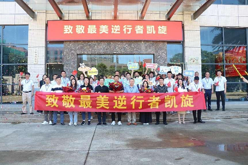 为欢迎公司海外销售人员凯旋,8月16日,致敬最美逆行者为主题,公司成员企业迈锐光电举行欢迎仪式,慰问感谢从美国归来的公司副总经理曾光明带领的海外销售团队。