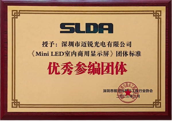 T/SLDA 007—2022《Mini LED室内商用显示屏》团体标准在2022年11月15日已发布并且正式实施。该标准研制了Mini LED室内商用显示屏各项要求,为产品技术创新和提升产品质量水平给出了标杆。迈锐光电作为该标准的起草单位,在积极引导行业走向标准化和规范化的同时,强化标准“硬约束”,保障产品高品质,目前公司推出的Mini LED系列产品已为多个运用场景提供技术解决方案及优质的产品服务。