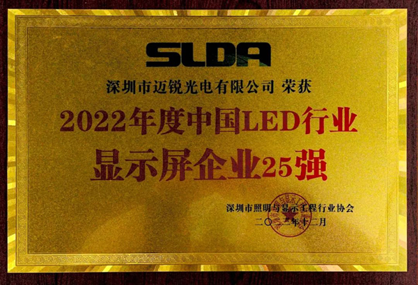 再次获得“2022年度中国LED显示屏行业25强企业”奖项,体现了行业对迈锐光电在过去一年在显示科技水平以及项目设计方案等方面所取得成绩的高度认可,尤其是在显示科技水平和项目设计方案方面,赢得了业界的广泛赞誉。