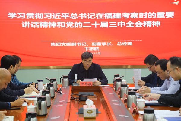 12月9日,集团党委副书记、副董事长、总经理卞志航到AG电子官方网站宣讲习近平总书记在福建考察时的重要讲话精神和党的二十届三中全会精神并巡听旁听党委理论学习中心组学习(扩大)研讨会。公司党委书记、董事长杨韬主持会议,公司领导班子成员及本部中层干部参加会议。